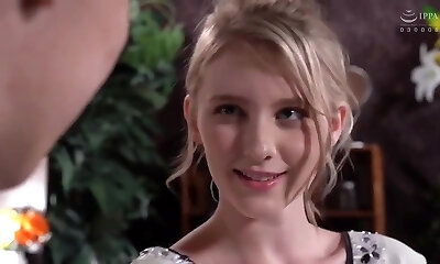 Small Blonde with pigtails Emma Rosie tries Chinese man rod for the first time