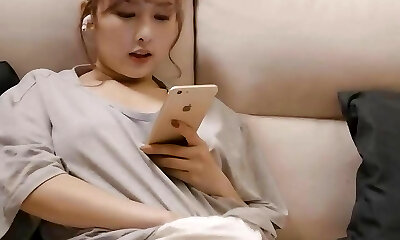 Light-haired slut young Asian nymph with sexy undergarments teasing brother and her wet pussy got fucked so hard