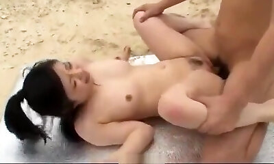 Super-naughty, Japanese schoolgirl is getting her smooth-shaven pussy hammered and creampied, the way she likes