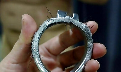 Mission Impossible or Pissing Challenge: Urinate in a Cup and don't Splash. Close-UP.