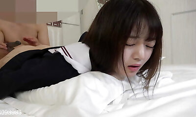 Pummeling a horny Japanese schoolgirl in uniform (Uncensored)