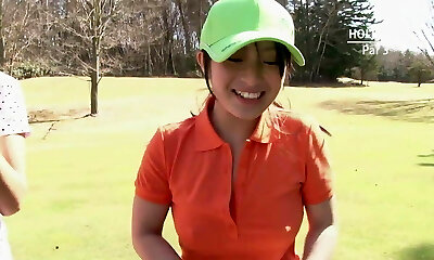 Asian gal with enormous tits finally gets to play golf naked