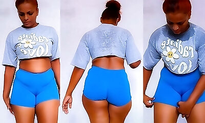 He dare to paw my snatch! He couldn't stand to just watch my cameltoe in white gym shorts.