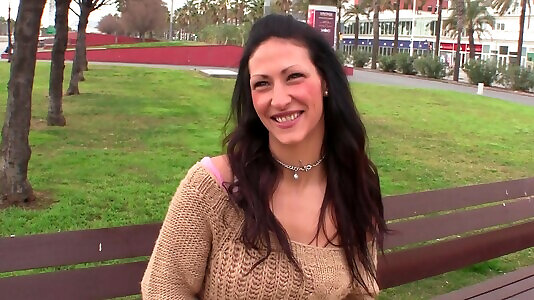 Lovely dark haired with long hair showing her shaved gash in point of view shoot