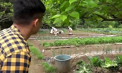 Japanese farmer girl, Maki Hojo had group sex outdoors, unce
