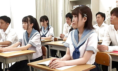 AI Steamy Asian teacher jumps on a schoolgirl's cock right in a classroom